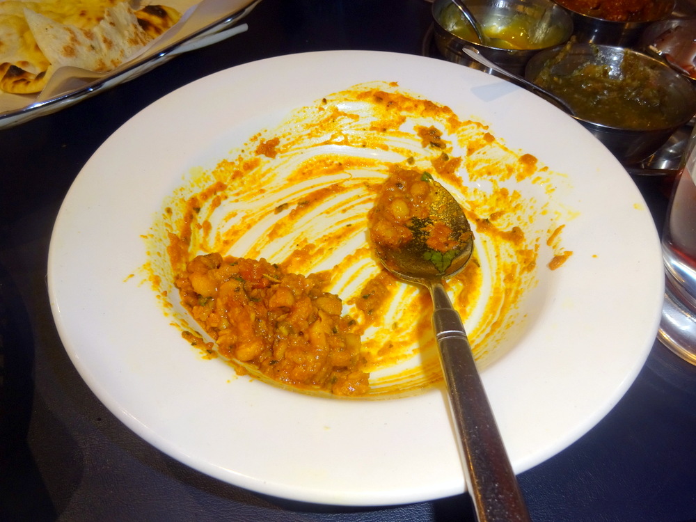 Chana Daal (£5.95) I can find on the Menu with the aid of hindsight. I took this to be – Lentils, maybe not then. Delightfully – Thick – and a perfect accompaniment. Ricky was already tearing into the Meat, I took my time to arrange Lamb and Daal on the Hector plate.
