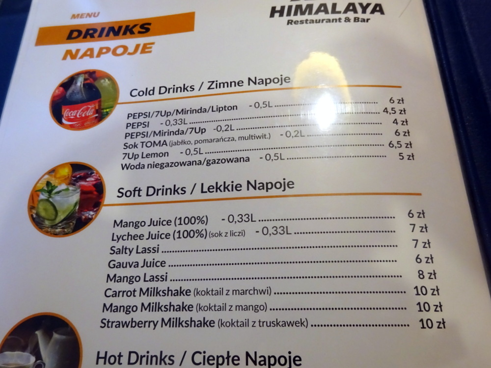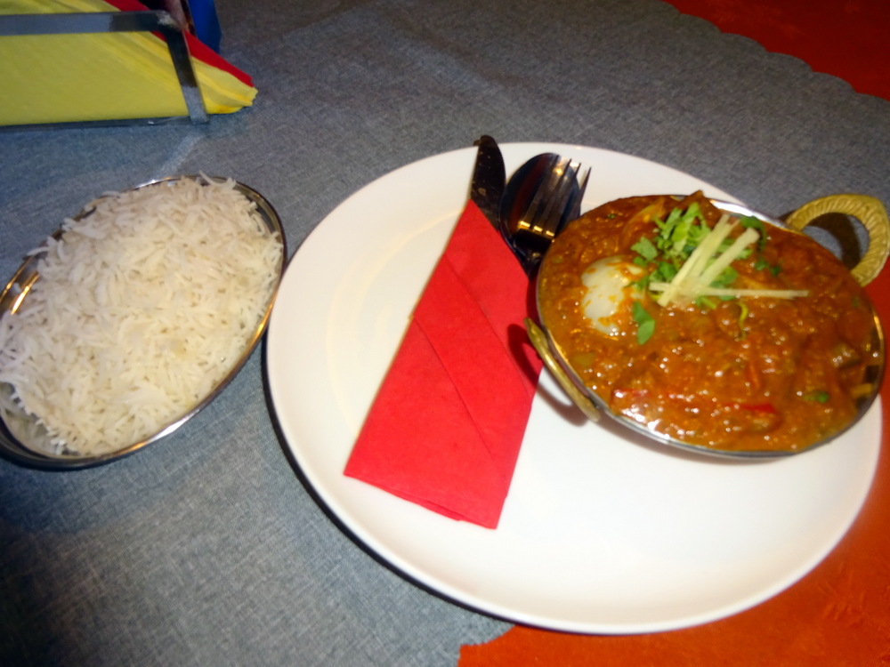 No sooner had all this been ordered when in walked Steve. We had to rearrange the furniture to fit him in. I now had a new perspective and noticed that the two Ladies received their Starters and Mains simultaneously. This would not have gone down well with us. The Menu setup was explained to Steve. Steve chose Samosa (Zl 10.00) and Lamb Curry with a Lemonade (Zl 25.00).