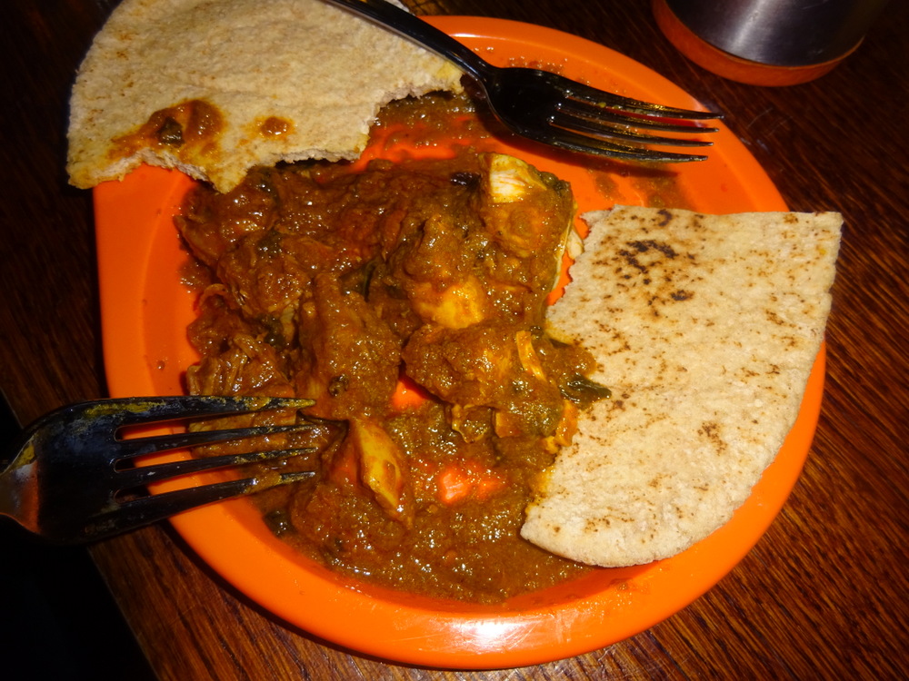 The last piece of Meat would be savoured. Massive – is how Marg described it. I manoeuvred the Lamb on to the plastic fork and dispatched it down the hatch. Yes, I had enjoyed this Lamb Vindaloo very much, with Potato it would have been even better.