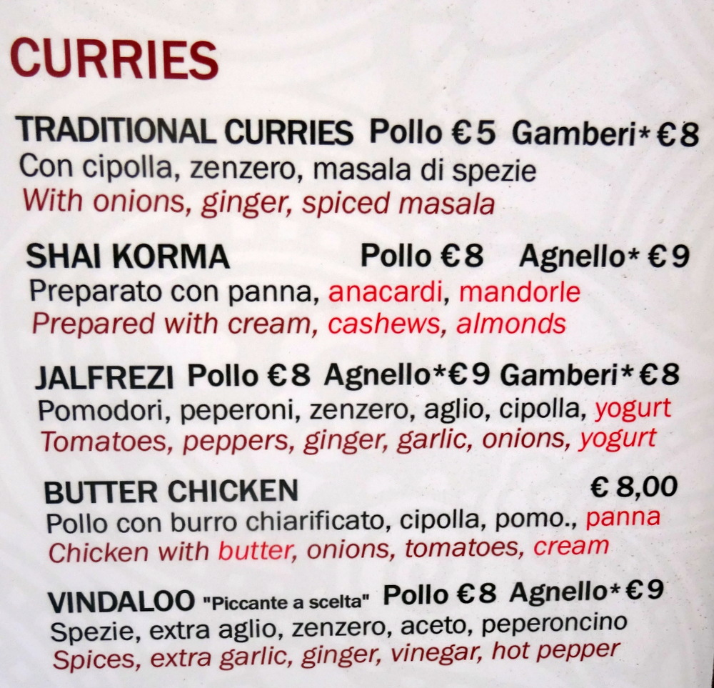 Google Maps show three Curry Houses called – Tandoori – in Cagliari. One assumes a chain, with three days left, I plan to verify if this is so.