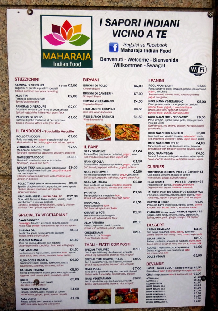 Later, we passed through – Republicca – to take the Metro. Another – Tandoori – as Google have it was nearby. I had to check it out. Behold, Maharaja (Via Grazia Deledda, 23, 09127 Cagliari, Sardegna, Italia), however, the name may be different, but the Menu was identical.
