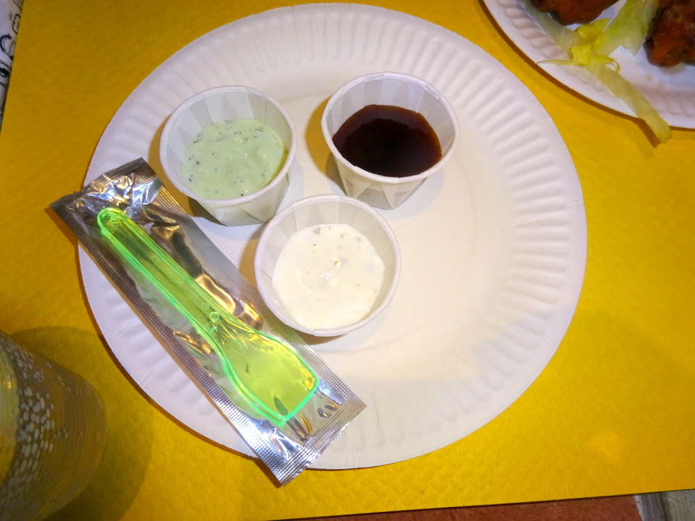 Five large pieces of Vegetable Pakora were accompanied by three microscopic Dips: something Creamy, Raita and Tamarind.