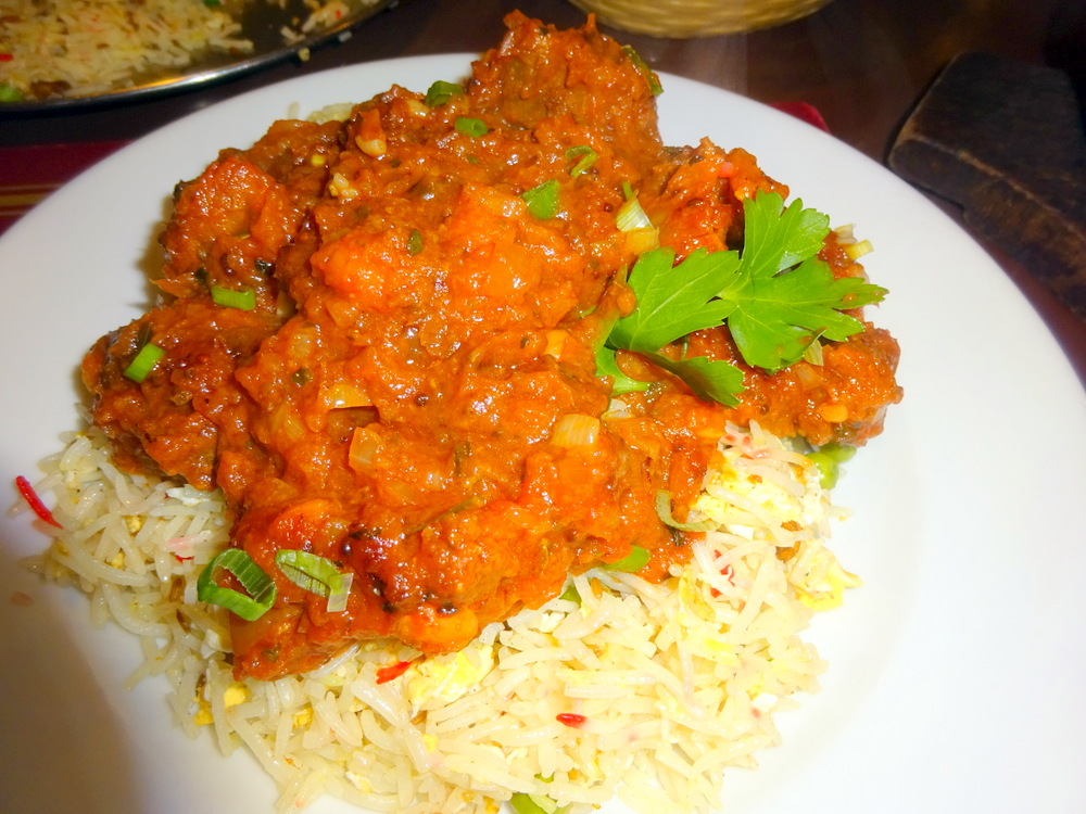 This was the winner as determined by the three who got to taste it. For once, Hector was diffident, and none was sampled. The dark Masala, with some Yoghurt/Cream stirred in, was reminiscent of a Daal Makhani. This was not a mass of Herbs without a proper Masala. A lack of Lamb was the universal cry, one may consider ordering a double portion at these prices, but with the Menu as it is, how?