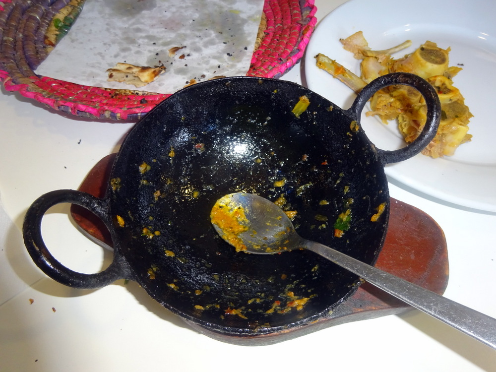 No sooner had all this been ordered when in walked Steve. We had to rearrange the furniture to fit him in. I now had a new perspective and noticed that the two Ladies received their Starters and Mains simultaneously. This would not have gone down well with us. The Menu setup was explained to Steve. Steve chose Samosa (Zl 10.00) and Lamb Curry with a Lemonade (Zl 25.00).