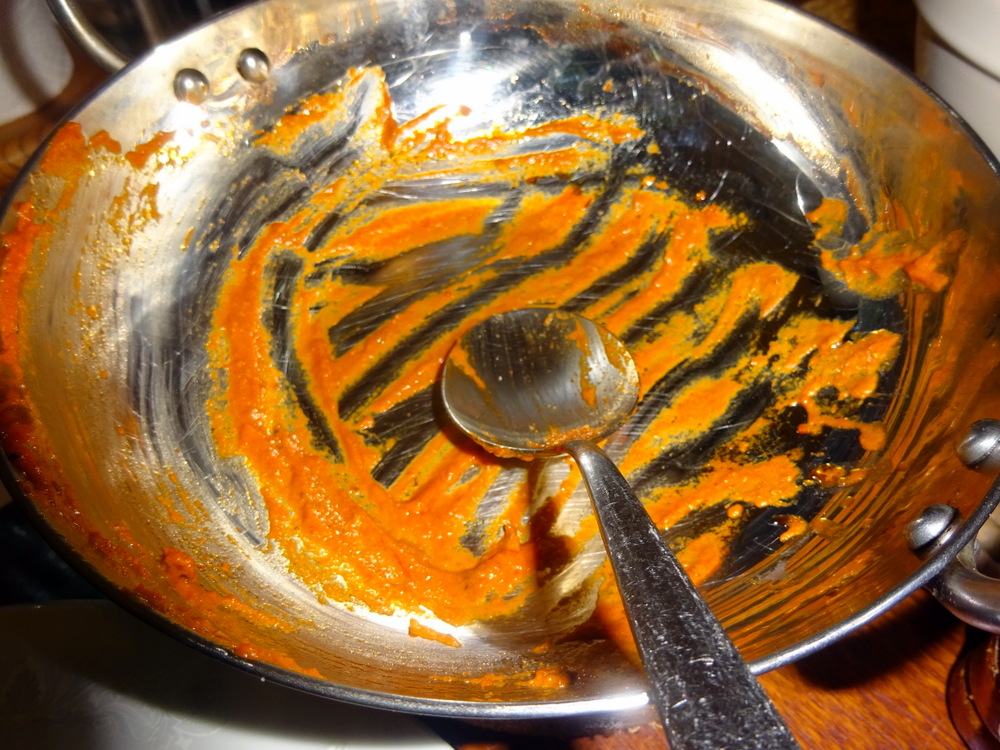 More Keema Karela of course. The Daal was simply labelled – Daal. Surely this was closer to Daal Makhani? Again, as a Side Dish, I love this stuff. I am reporting it as a Daal Makhani, if it wasn’t then it was quite simply the best Plain Daal, ever. The Shorva which accompanies Lamb Nehari puts me off ordering this except on the odd occasion where I can be convinced the Masala is otherwise. With no Rice or Bread on this round, it was a bit of a splash. When I had reached the end of the line of tureens, the Paya was only Shorva and Bones, no Meat was left. As Stuart had been broad-minded enough to sample this earlier, I thought I had better take the opperchancity. I mentioned to one of the Waiters that the Paya was in effect, empty. He promised to rectify this.