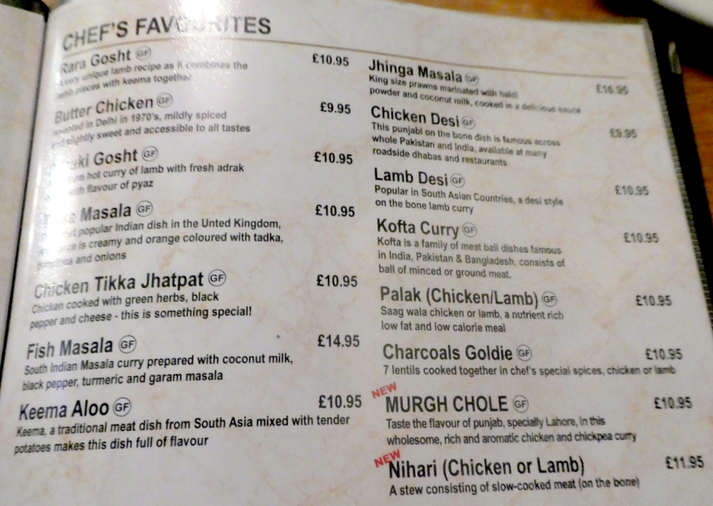 For many years the frontage of Charcoals suggested little more than a Takeaway. Hector’s first sit down meal was in 2011, competent Curry, not a lot different from what I can make at home. By 2012 the management had changed, the interior was redesigned and the Awards started to accumulate. I have been critical of the Fayre over the years, a tendency towards – Mainstream – persists, one always hopes for the – Wow! However, Charcoals remains Hector’s favourite City Centre Restaurant.