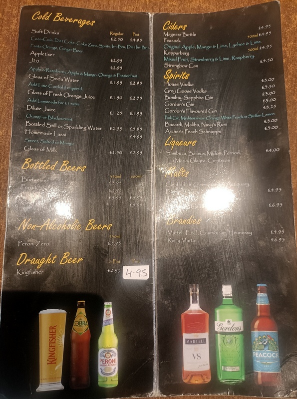 The Menu has the Mainstream, the varying Special Menu always offers something extra for the more discerning diner. Zak likes to be innovative and often features Spinach in his Curry, Hector prefers Methi. We have had our moments, especially when the devil’s ballast – Capsicum – turns up when withholding it has been specifically requested. Ask for your Curry how you want it, you might be lucky…or not.