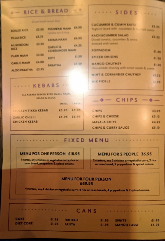 Curry Pot was first visited in 2013, soon after it opened. Still a Takeaway, a couple of makeshift tables and chairs had been installed to let those who insisted, sit-in. Simrat, Mein Host, was happy to produce a bespoke Curry for Hector – Lamb Methi Bhuna. Despite my appreciation being recorded as – perfectly competent and enjoyable Curry, there was no return to Curry Pot until 2025, maybe something to do with the pub next door becoming less of an attraction.