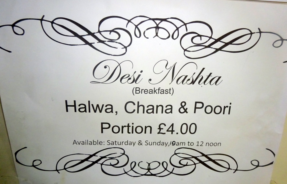 Lamb/Chicken Karahi, and the White Karahi should be ordered in advance, these take a special effort. Punjabi Breakfast is available from 10.00 until Noon, at weekends.
