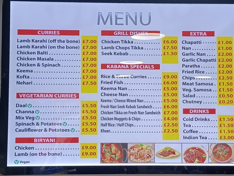 The Welcome at Kabana is what makes this place stand out. Similar venues may also be queued out at Lunchtime Monday to Friday. There one may get a nod of recognition, whereas Rizwan, Mein Host at Kabana gets to know his customers very quickly There is a genuine and hearty welcome here. Choose from the Menu, or for a quick meal, from the Daily Specials.