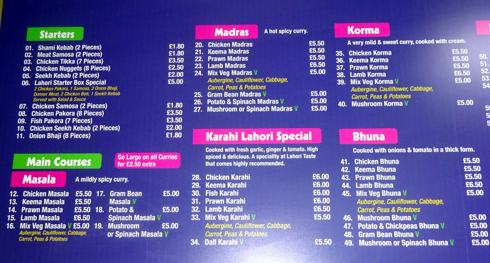 Located next door to the Rat and Ratchet, Hector walked past Lahori Taste for years. It was the then lack of late night Curry venues in Manchester’s Northern Quarter which was the motivation to try Lahori Taste. One visit was enough to make it a regular venue when in Huddersfield. There are only four tables as Lahori Taste is primarily a Takeaway which also delivers. However, few people actually sit in, those who do always make one feel welcome. Mein Host, Salem, is usually on hand to assist.