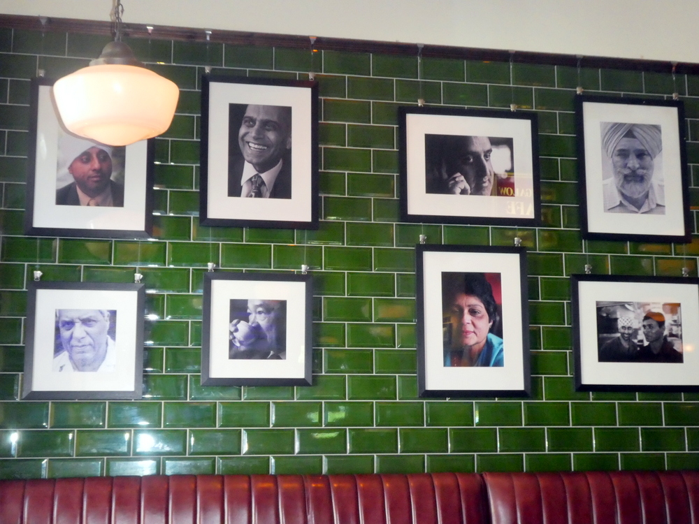 The walls are adorned with the faces of dignitaries associated with Curry in Glasgow.