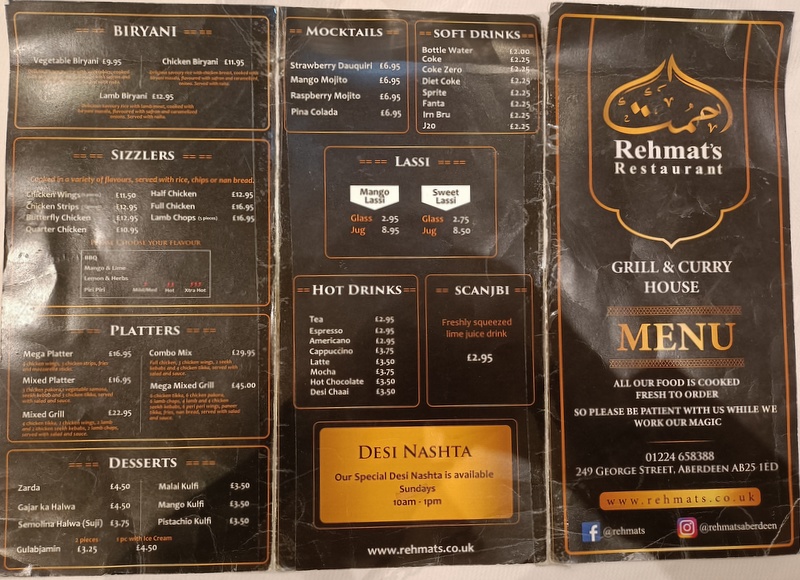 Rehmat’s Restaurant – 249 George St., Aberdeen AB25 1ED Scotland