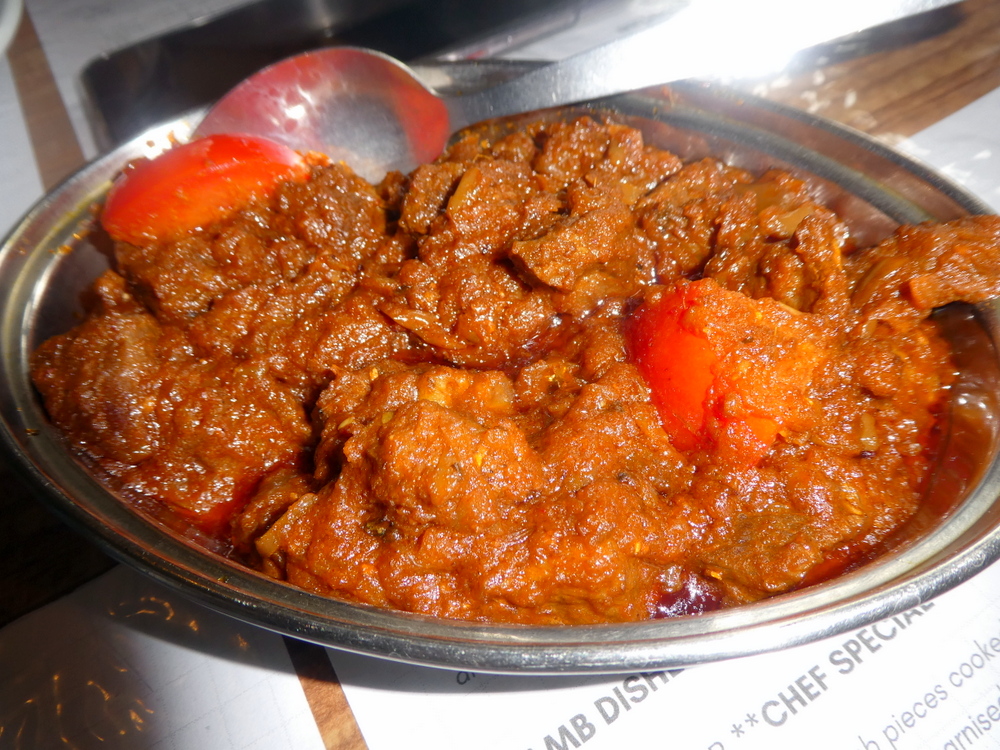 The menu is not vast, it covers the bases. Bhuna Lamb – Chef Special, without the Capsicum garnish, has become Hector’s standard order.