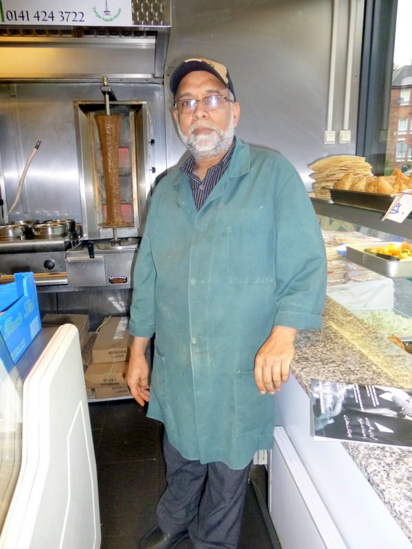 Yadgar Kebab House (148 Calder St, Govanhill, Glasgow, G42 7QP) opened in 1981 at its present location. It has been run as a family business with Mr Anwar (Sr.) as the overseer. Over a decade ago they bought over the adjacent barber shop and were thus able to expand the premises from being simply a take-away shop into the café style restaurant.